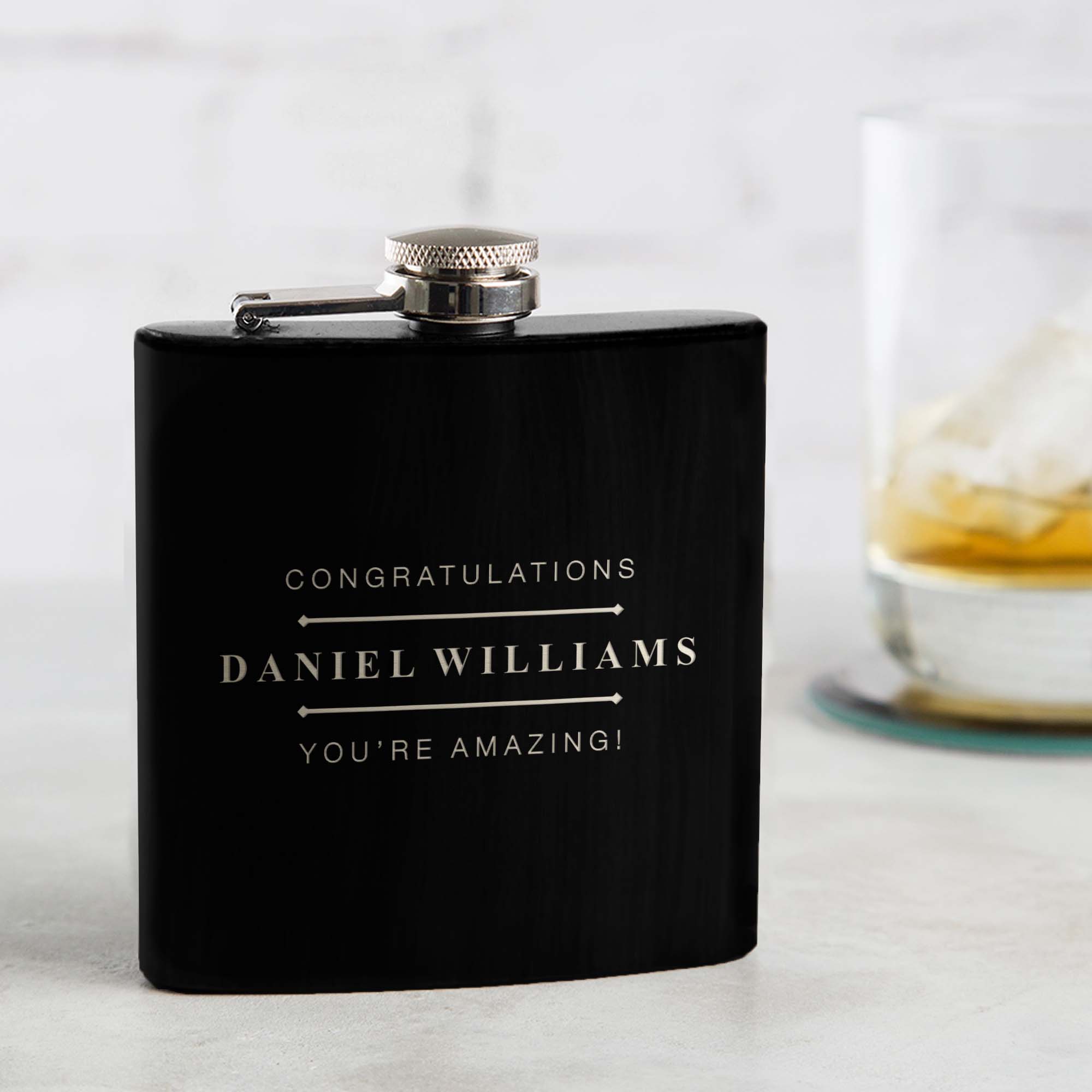 Engraved Leather Hip Flask - Groomsman Gifts - Luxury Wedding Gifts - Party Presents from Bride and Groom - 6oz Grey Leather Wrapped Canteen
