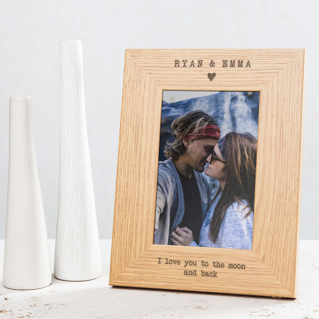 Personalised Couples Oak Photo Frame - Valentine's and Anniversary Gift for Her