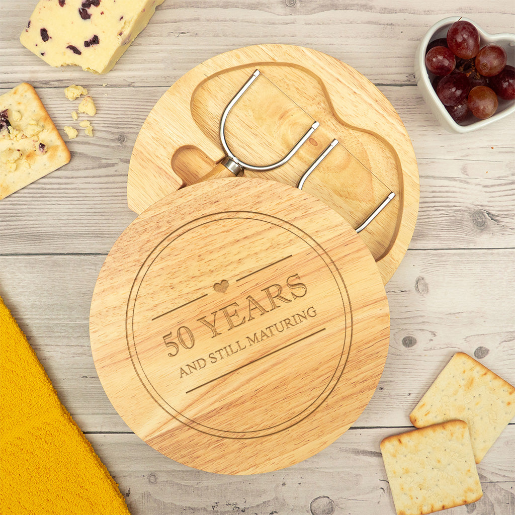 Engraved '50 Years and Still Maturing' Anniversary Cheese Board Set