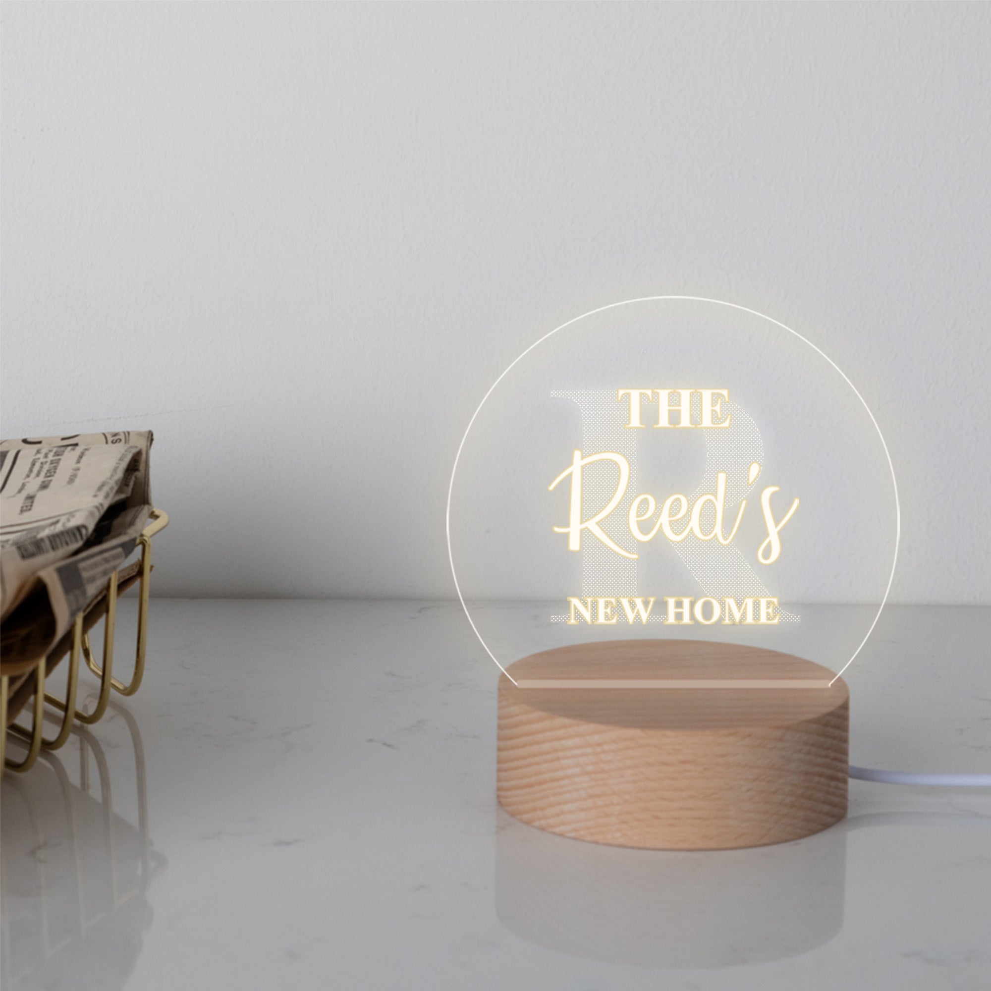 The acrylic topper will be engraved with the name, initial and date of your choice in a modern text, with the initial placed behind the bold text of the name in cursive. Perfect for setting up as a decoration or setting up on your work desk at home, or in the workplace.