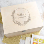 Fill it with all her favourite things, so she can rummage through the box on Christmas day. Engraved with a beautiful winter wreath and the text of your choice, you may choose from 1-4 lines.
