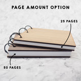 Choose from oak or walnut veneer with 25 or 50 pages of high quality 190GSM paper.